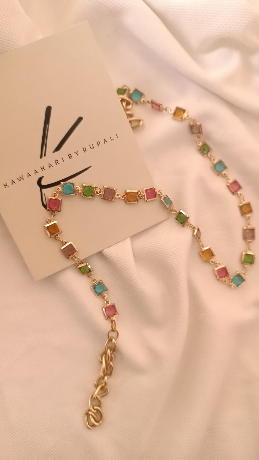 A vibrant multicolor stone necklace, an exquisite display of hues and brilliance, captivates with its unique charm and elegant allure