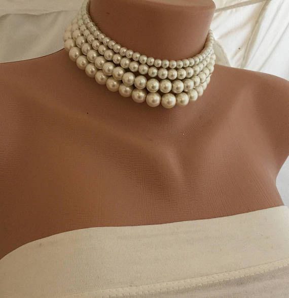 “Elevate your look with a stunning white 4-layered statement pearl choker, a luxurious accessory that exudes elegance and sophistication, perfect for special occasions.”