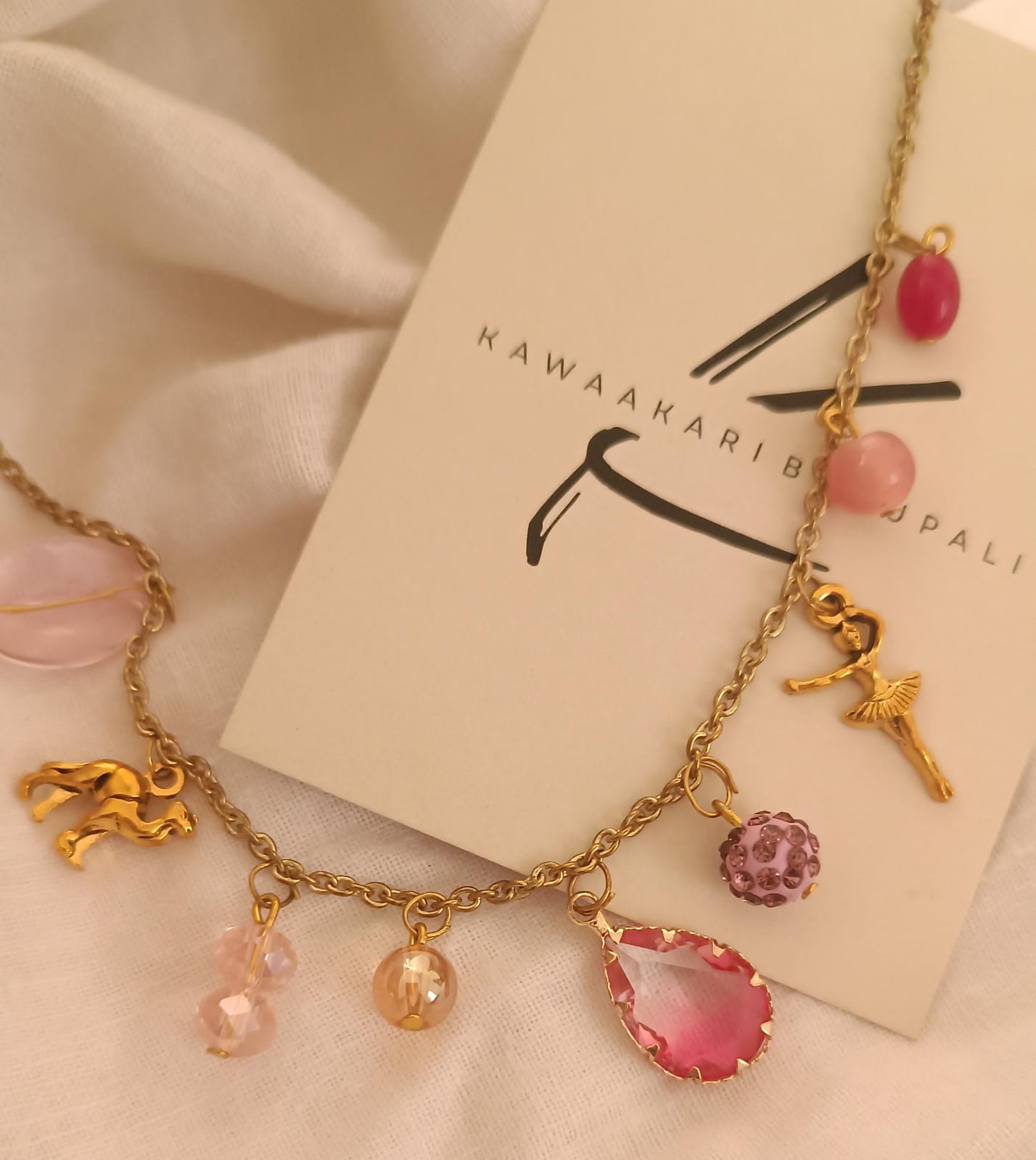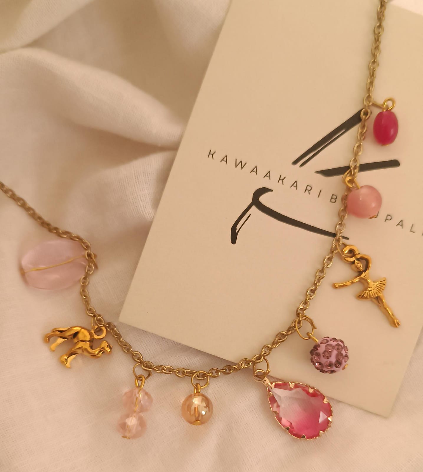 A charm necklace combines personal significance with style, featuring various small pendants that represent memories, beliefs, or interests.