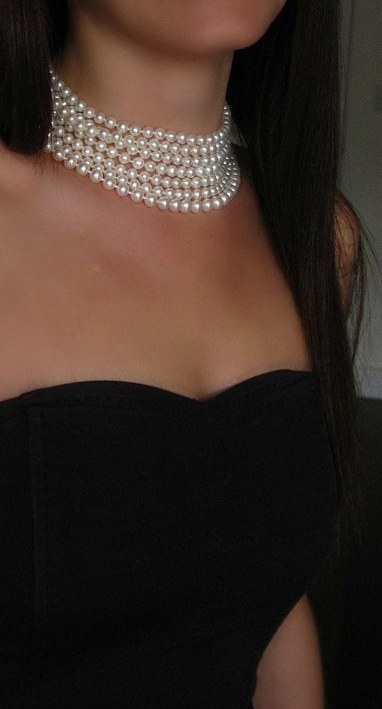 This statement pearl choker is a bold and elegant accessory, a style that command attention and elevate any ensemble.