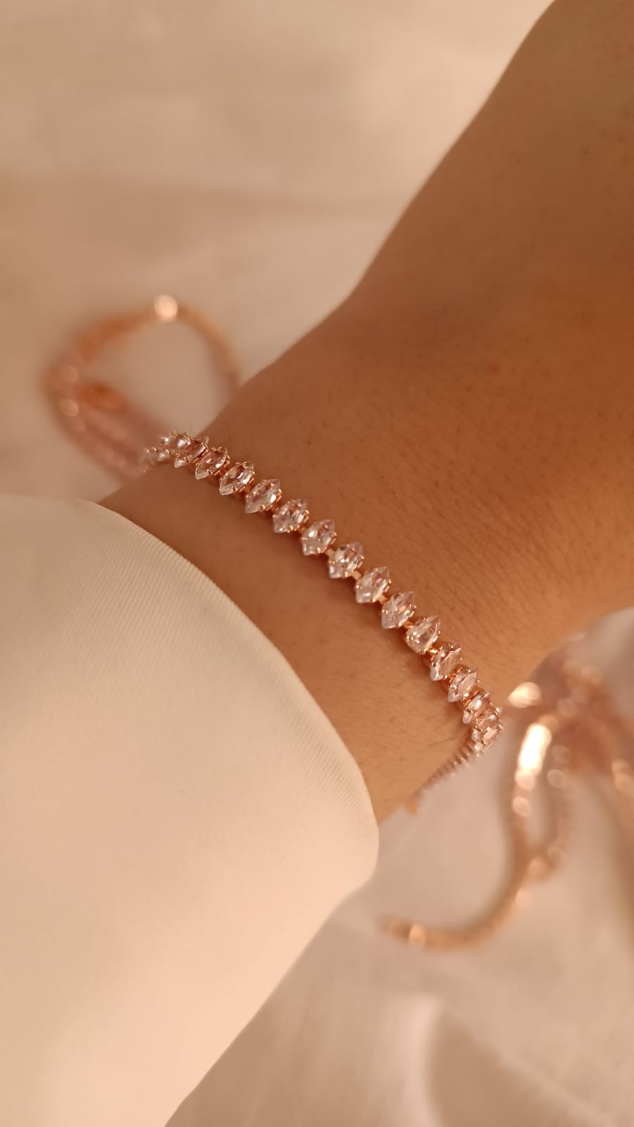 This sleek rose gold heer bracelet embodies minimalist elegance, featuring a refined, slender design that complements any look. Its subtle shine adds a touch of sophistication, ideal for everyday wear.