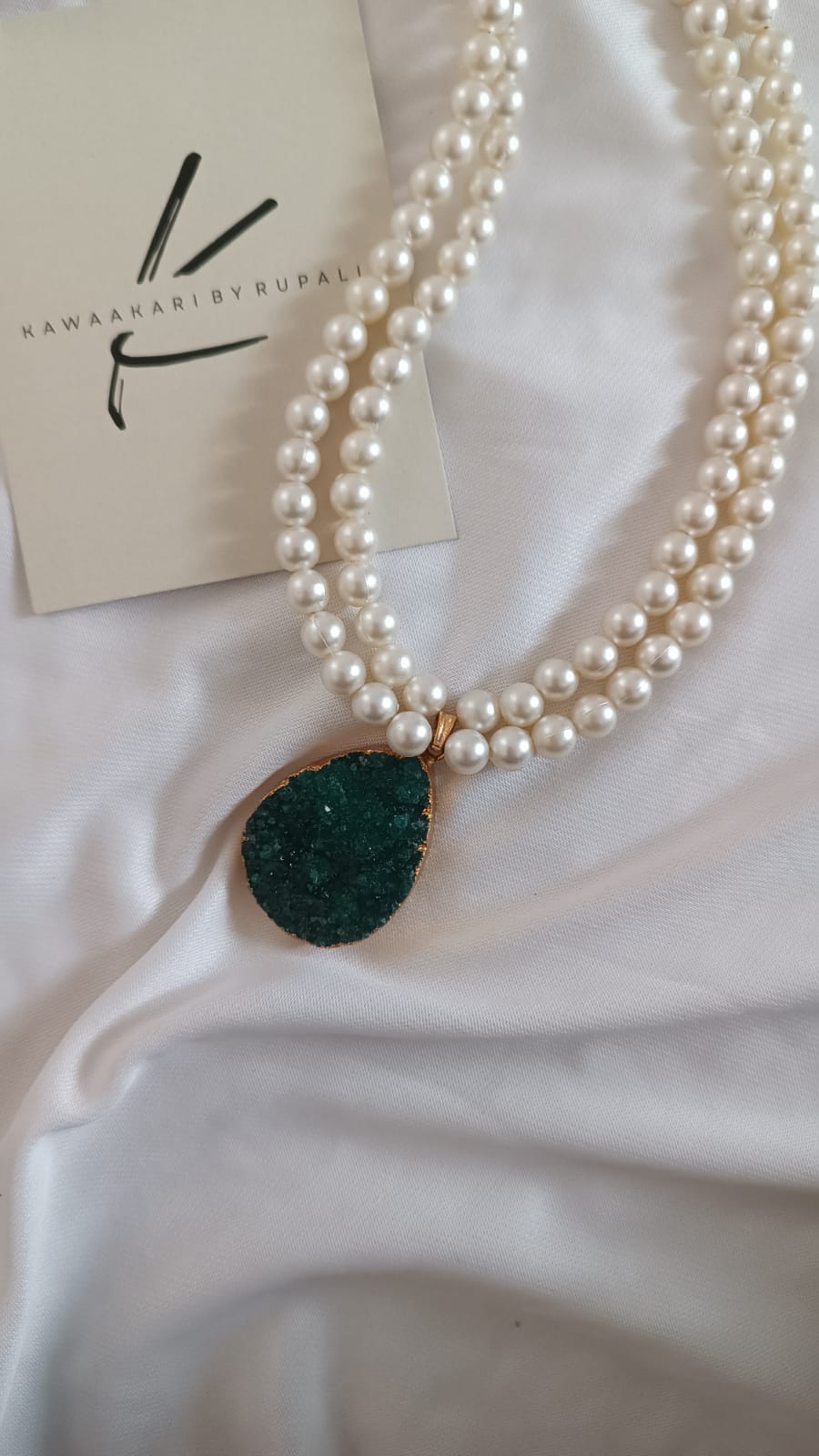 This emerald electroplated gold agate necklace harmonizes nature’s splendor with opulent luxury, radiating elegance through its stunning combination of materials.