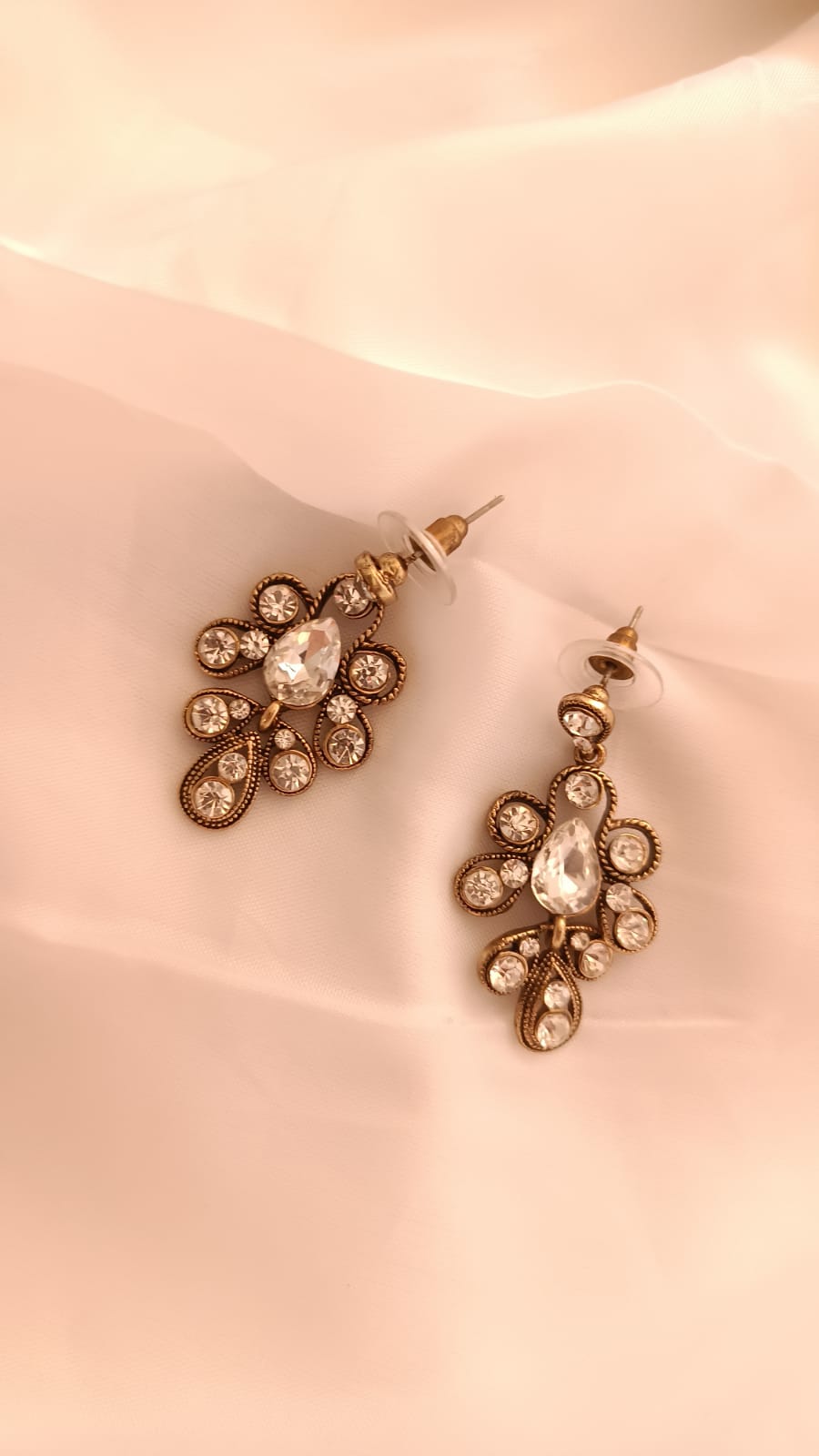 Zoya earrings is a blend of vintage charm with contemporary flair, showcasing intricate designs accented by an aged patina finish. These earrings evoke a sense of timeless beauty and cultural fusion, making them a captivating addition to any jewelry collection, perfect for adding a touch of elegance to both traditional and modern attire.