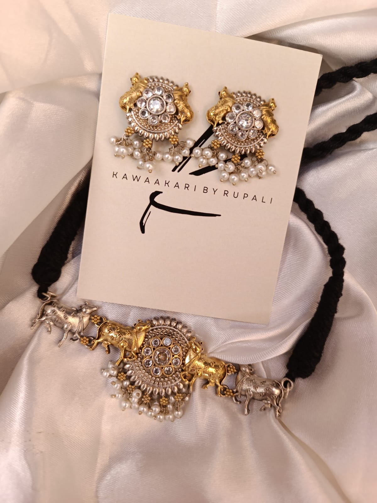 Exquisite ethnic Nandi Choker set, crafted in shimmering silver. Intricate designs reflect cultural richness, adding elegance and allure to any ensemble.”