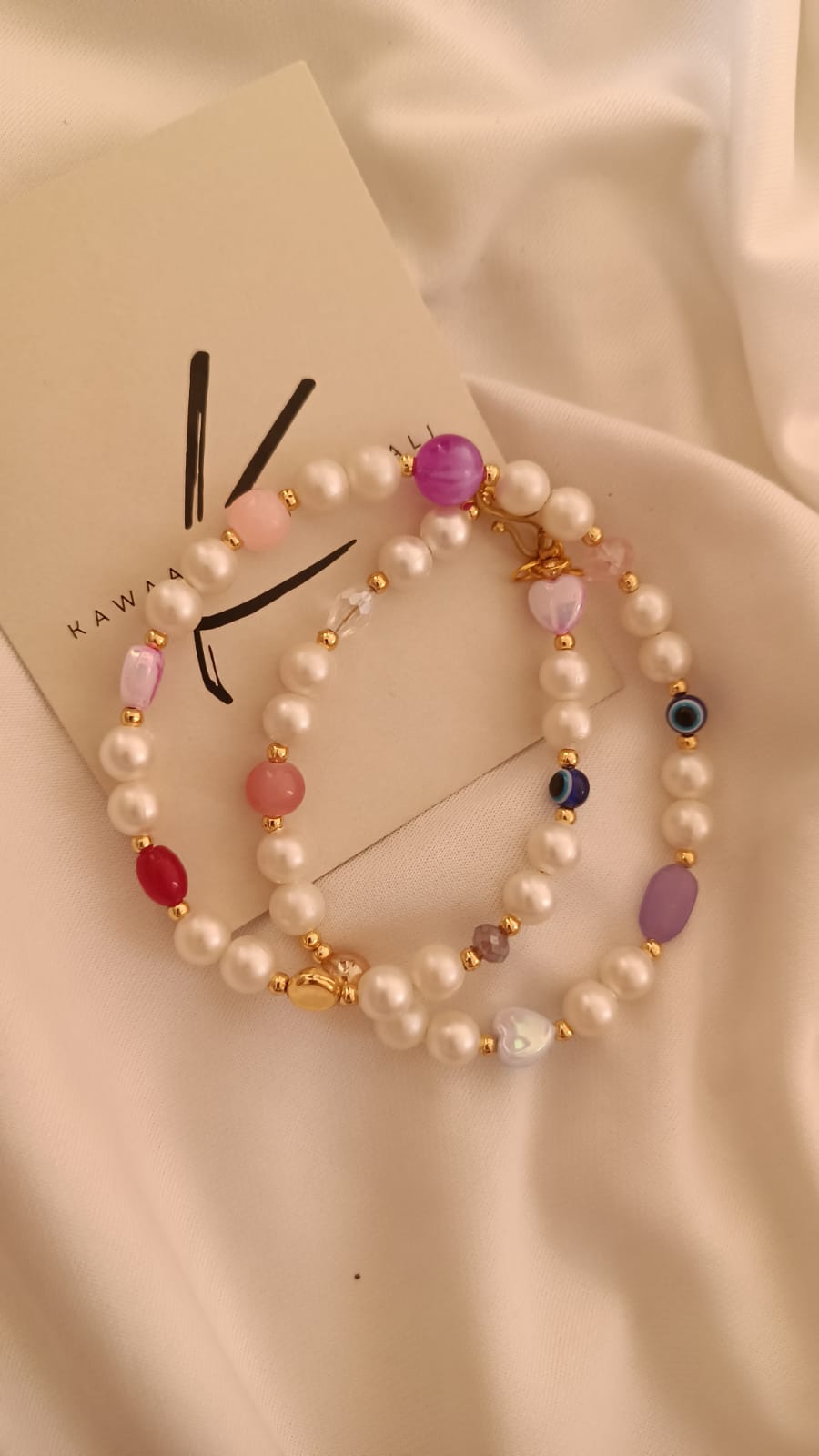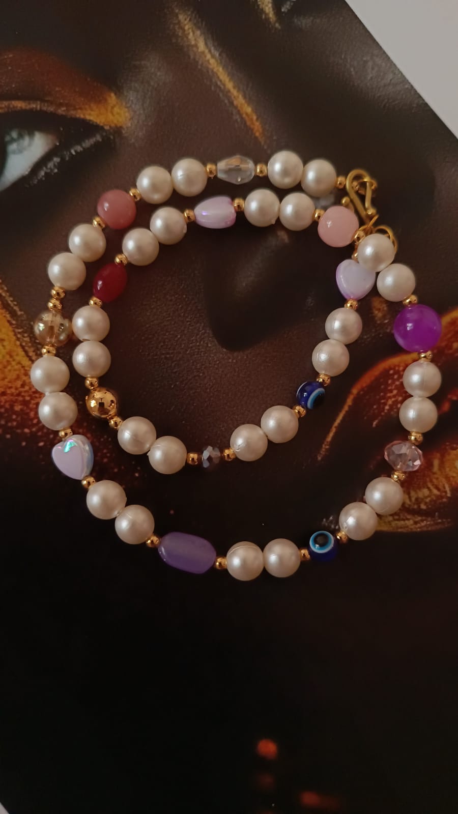 Simple multicoloured singleline pearl necklace.