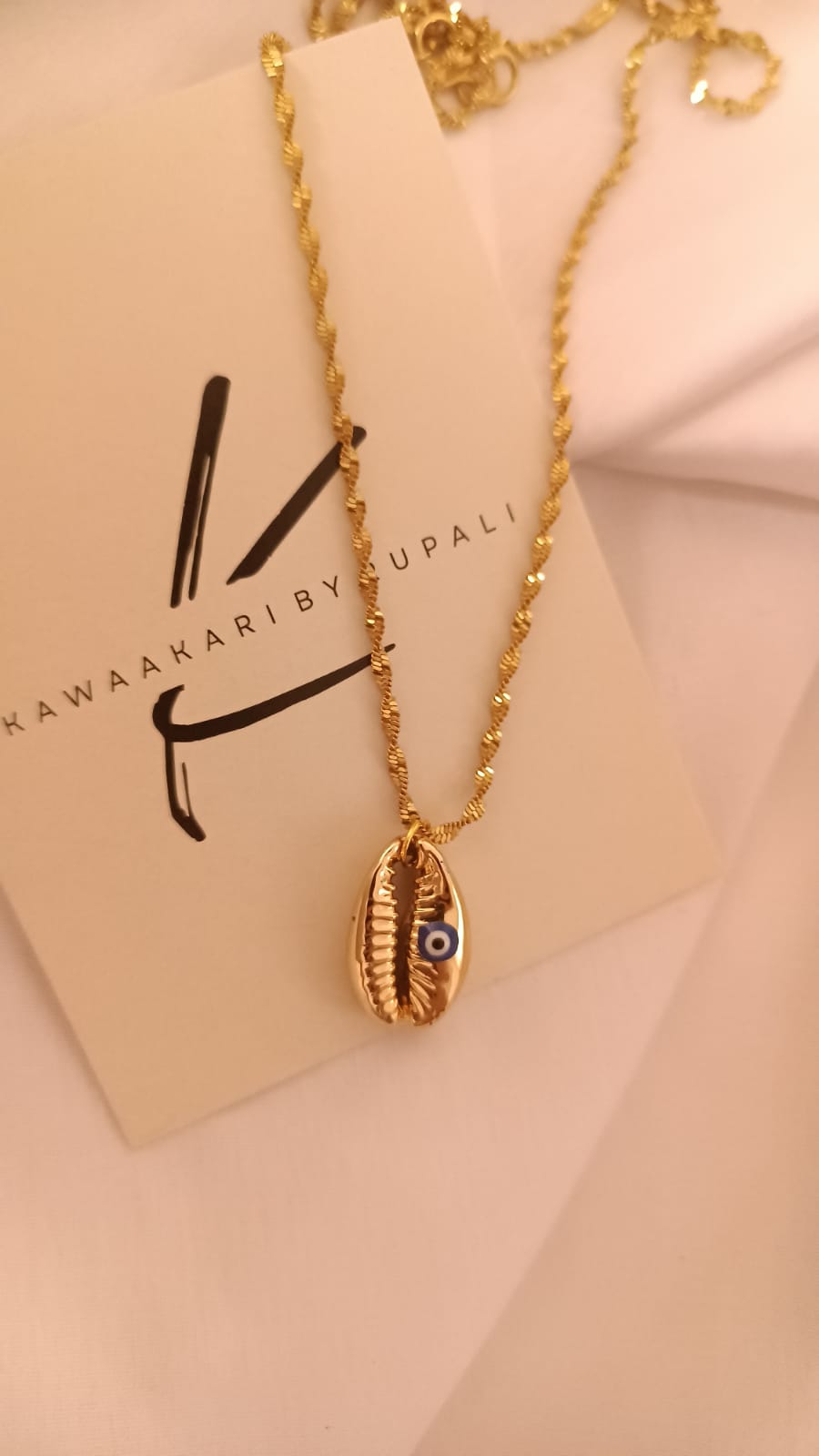 Shell evil eye pendant necklace: a captivating blend of seaside elegance and ancient symbolism, warding off negativity with effortless style.
