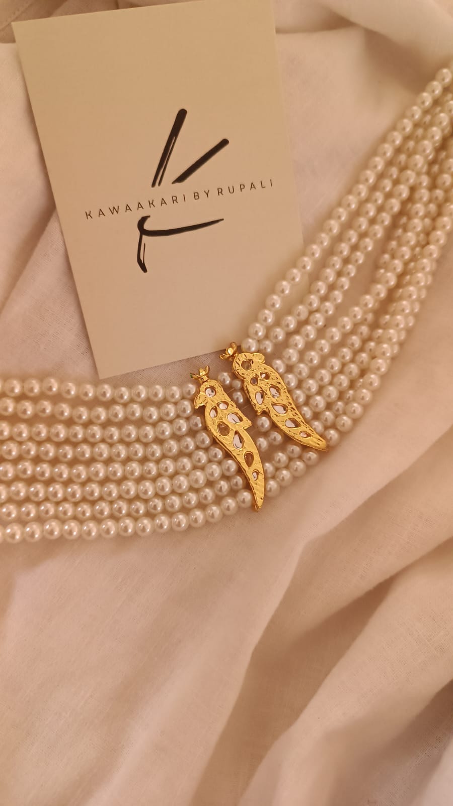 Elevate your style with this elegant statement tota-pari pearl choker. Featuring lustrous pearls and a chic design, this timeless accessory adds sophistication and grace, perfect for weddings, parties, or special occasions.